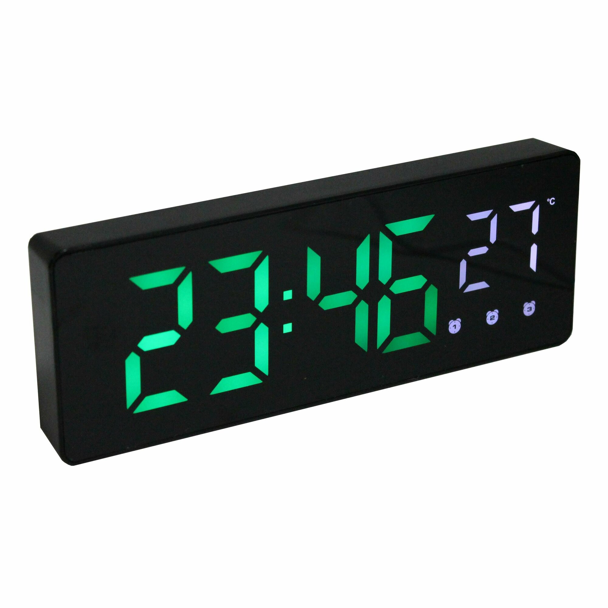 Часы электронные цифровые настольные с будильником, термометром и календарем белая зелёная подсветка