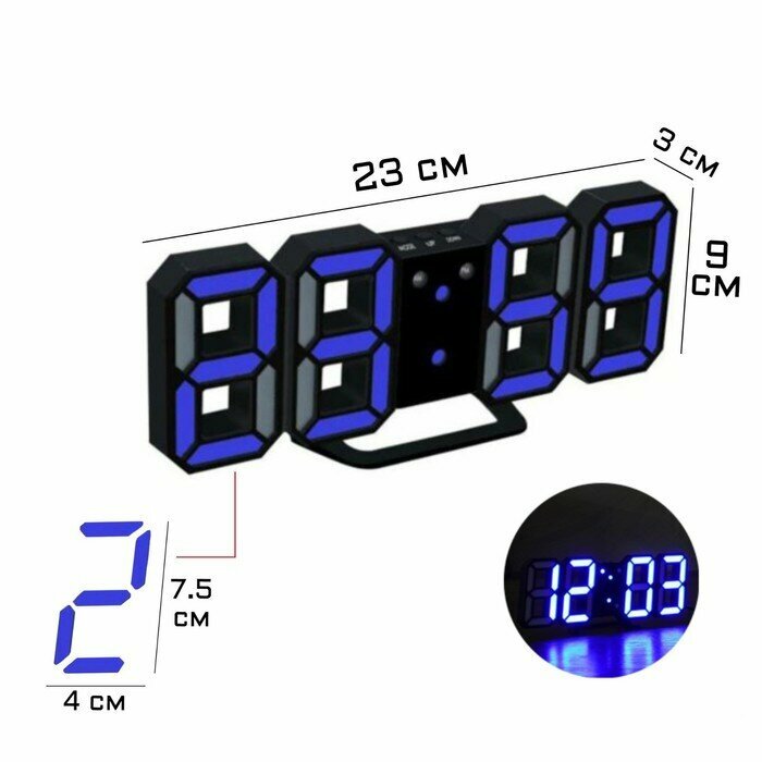 Часы электронные настенные, настольные "Цифры", синяя индикация, 9 х 3 х 23 см, от USB интересное: