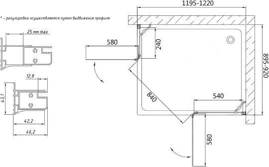 душевой уголок Vegas Glass Душевой уголок Vegas Glass AFA-F 120*90 08 01 R профиль глянцевый хром, стекло прозрачное интересное: