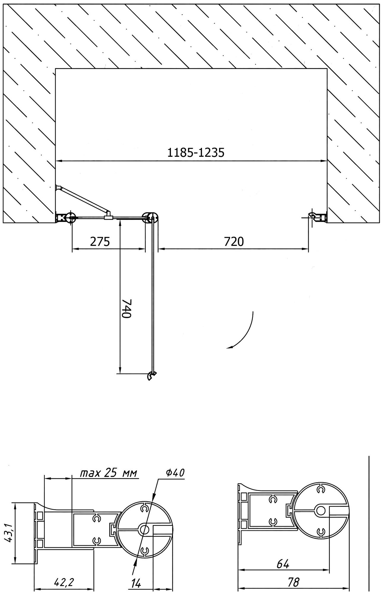 душевая дверь в нишу Vegas Glass Душевая дверь в нишу Vegas Glass EP-F-1 120 05 01 R профиль бронза, стекло прозрачное интересное: