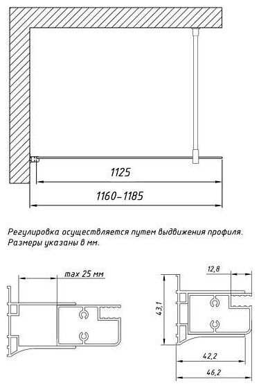 душевые перегородки Vegas Glass Душевая перегородка Vegas Glass EAF 116 05 10 профиль бронза, стекло сатин интересное: