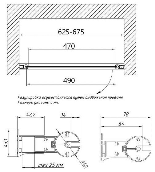 | Дополнительная информация | Комплектация | Душевая дверь - 1 шт. ,Инструкция - 1 шт.;Ширина. мм | 650;Толщина полотна двери, мм | 6;Материал полотна двери | стекло;Материал профиля | алюминий;Монтаж | напольный;Поверхность | матовая;Дополнительная информация | регулируемая ширина 64-67 см; |