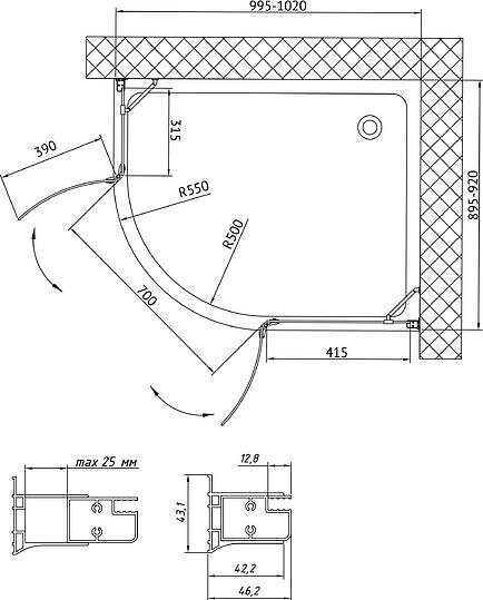 душевой уголок Vegas Glass Душевой уголок Vegas Glass AFS-F 100*90 05 01 R профиль бронза, стекло прозрачное интересное: