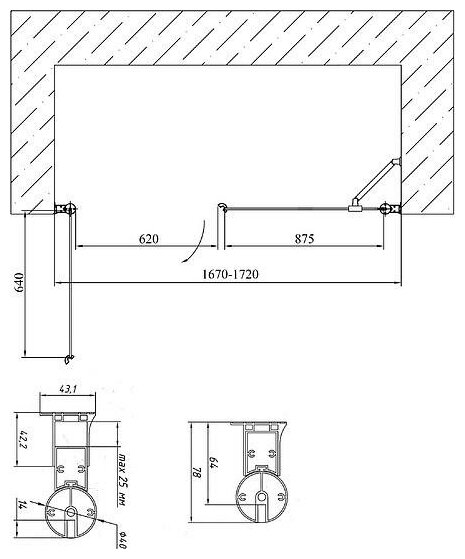 | Дополнительная информация | Комплектация | Душевая дверь - 1 шт. ,Инструкция - 1 шт.;Ширина. мм | 1700;Толщина полотна двери, мм | 6;Материал полотна двери | стекло;Материал профиля | алюминий;Монтаж | на поддон/напольный;Поверхность | глянцевая;Дополнительная информация | регулируемая ширина 167-172 см, силиконовый магнитный уплотнитель; |