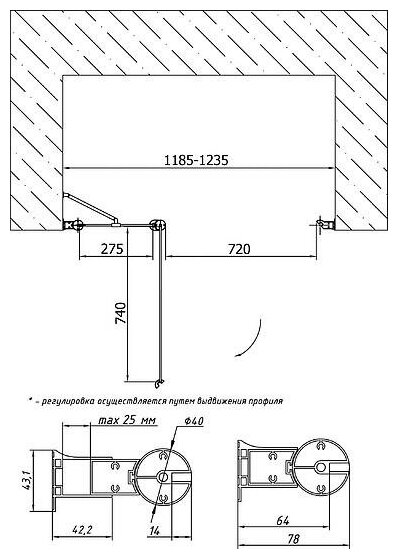 | Дополнительная информация | Комплектация | Душевая дверь - 1 шт. ,Инструкция - 1 шт.;Ширина. мм | 1200;Толщина полотна двери, мм | 6;Материал полотна двери | стекло;Материал профиля | алюминий;Монтаж | на поддон/напольный;Поверхность | матовая;Дополнительная информация | регулируемая ширина 118,5-123,5 см, силиконовый уплотнитель; |