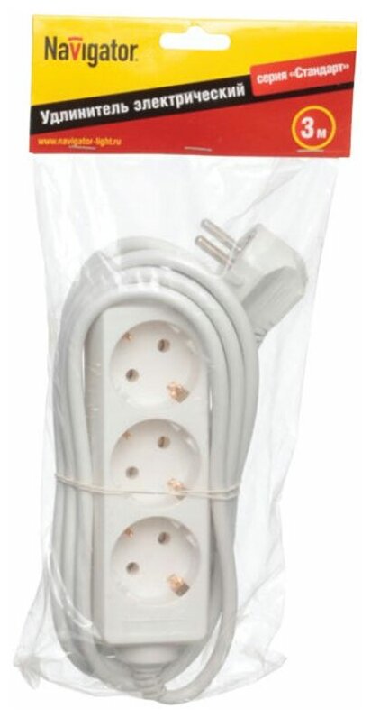 Удлинитель бытовой Navigator 94 179 б/выкл., 3 розетки, с зазем., 3 м