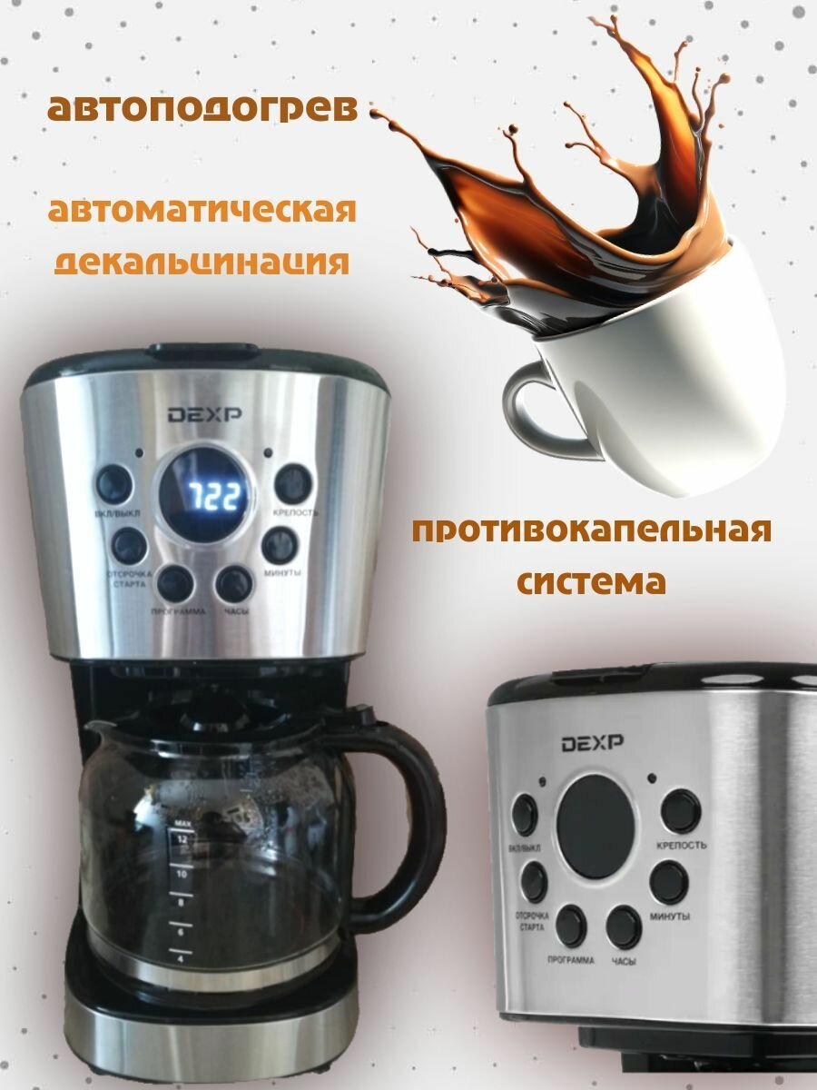 Кофеварка капельная DEXP DCM-1600 серебристый интересное: