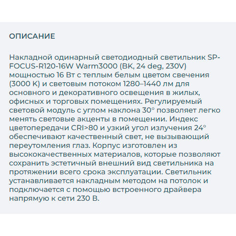 Светильник SP-FOCUS-R120-16W Warm3000 (BK, 24 deg, 230V) (Arlight, IP20 Металл, 3 года) (029533)