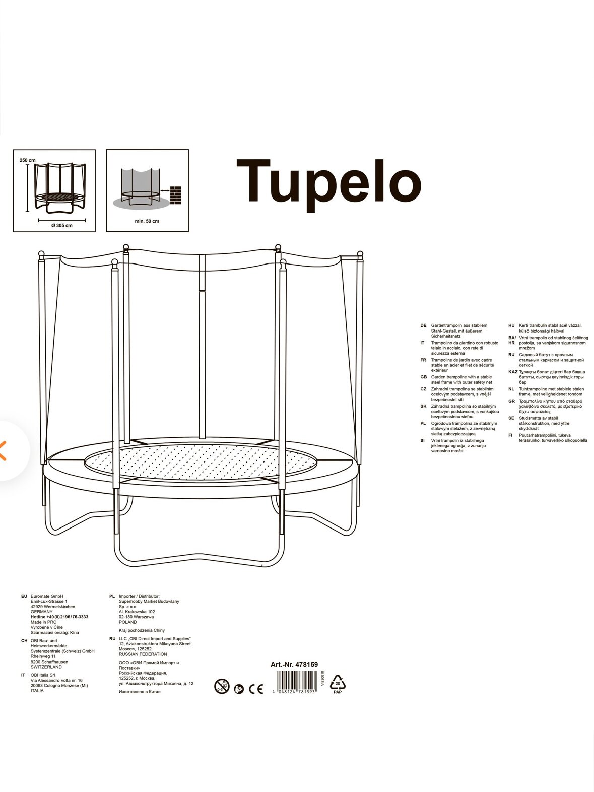 | Диаметр прыжковой зоны | 140 см |