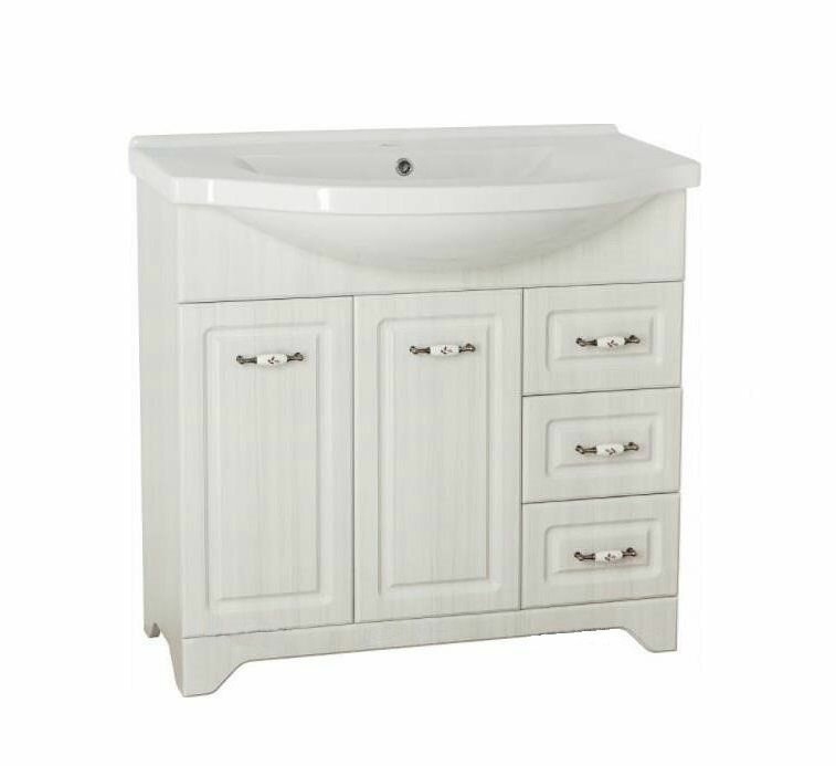 Купить Тумба с раковиной Style Line Олеандр-2 90 (3 ящ.) + Умывальник Эльбрус 90 Рельеф пастель