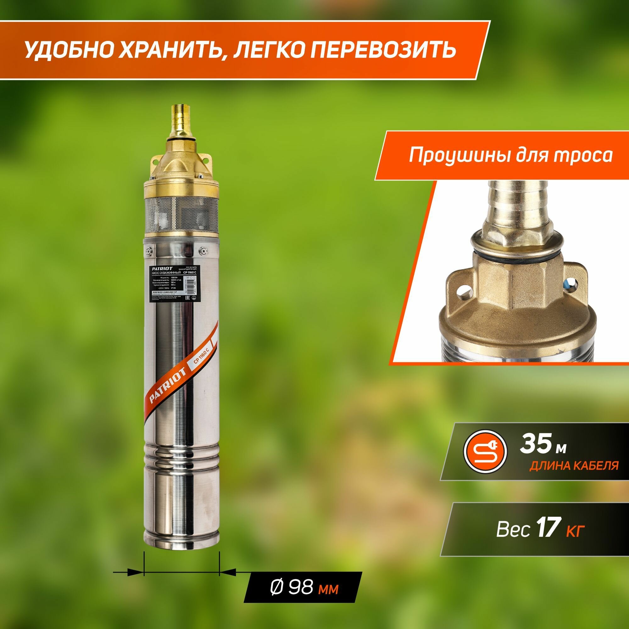 Насос скважинный, Patriot, 750 Вт, диаметр 98 мм, глубина погружения 30 м, максимальный напор 50 м, 4.32 м3/час, CP5360C