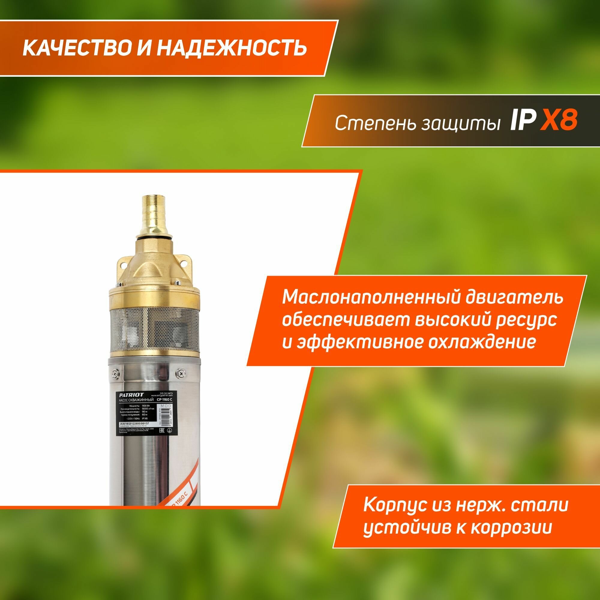 Скважинный насос глубинный для колодца центробежный PATRIOT CP 1160 C, 1100Вт, 5000 л. час
