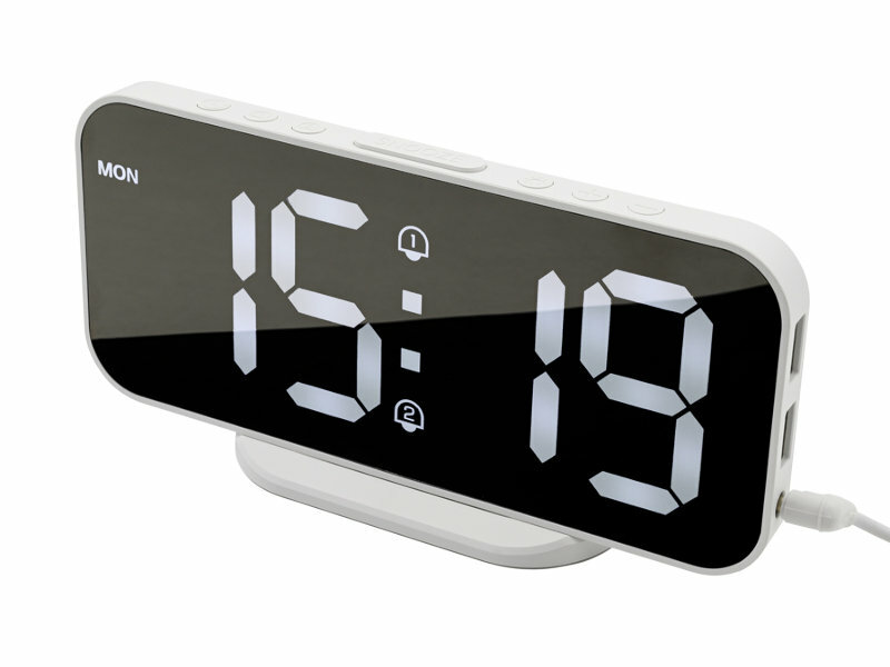 Часы настольные электронные с проекцией: будильник, термометр, календарь, 19.6 х 6.5 см