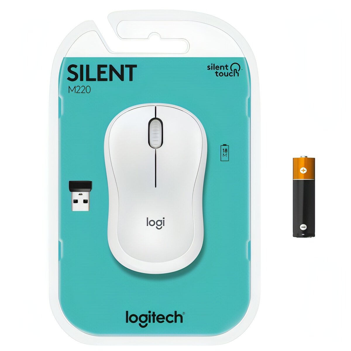 Мышь беспроводная Logitech M221 SILENT, 1000dpi, оптическая светодиодная, USB, белый (910-006090)