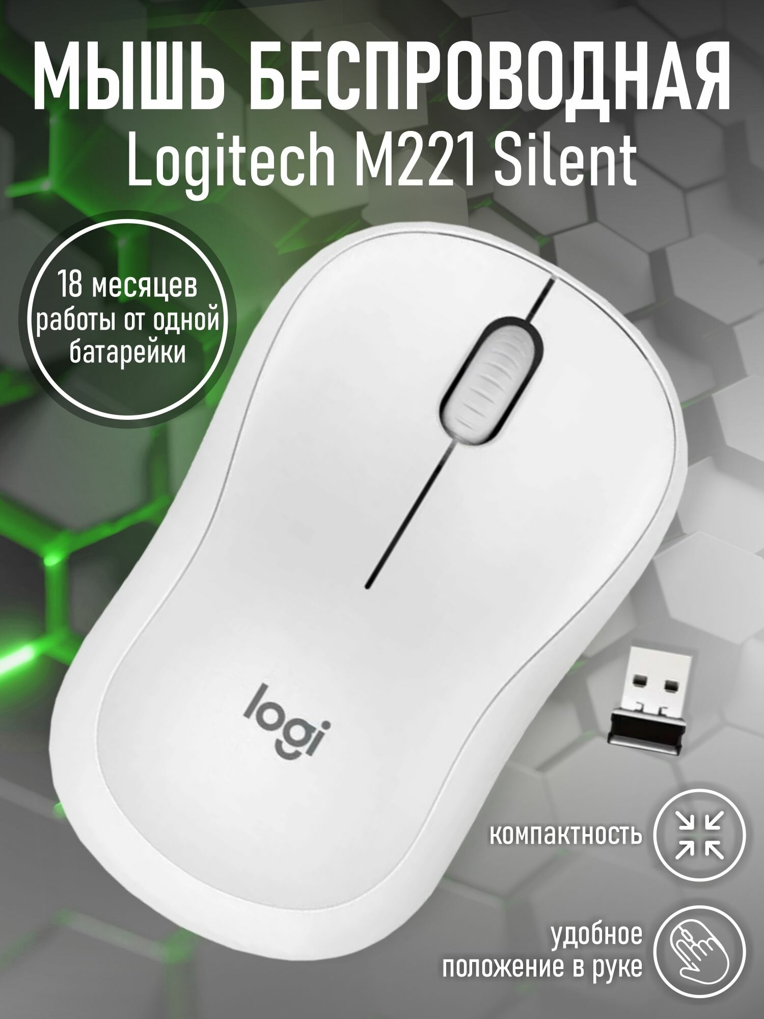 СохранитьБеспроводная мышь Logitech M221 Silent, белый интересное:
