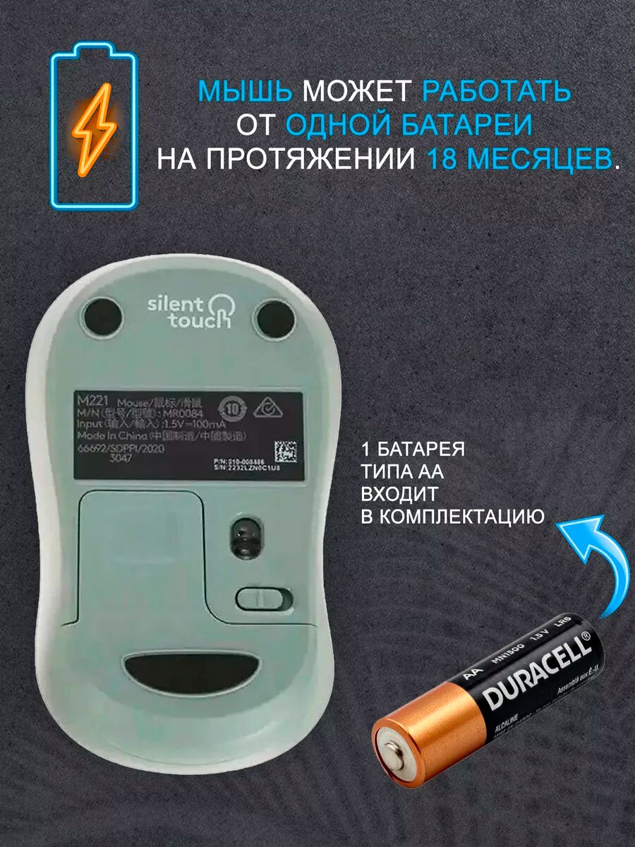 СохранитьБеспроводная мышь Logitech M221 Silent, зелeный интересное: