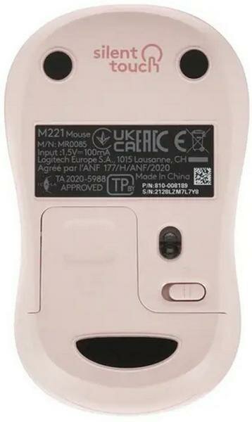 Беспроводная мышь Logitech M221 Silent, бесшумное нажатие, розовый, 1000 dpi