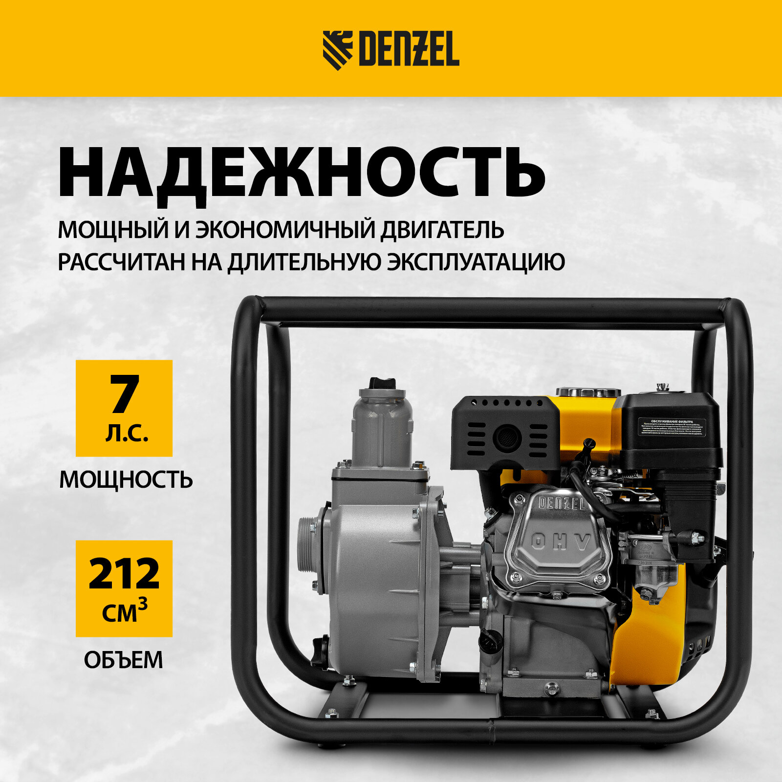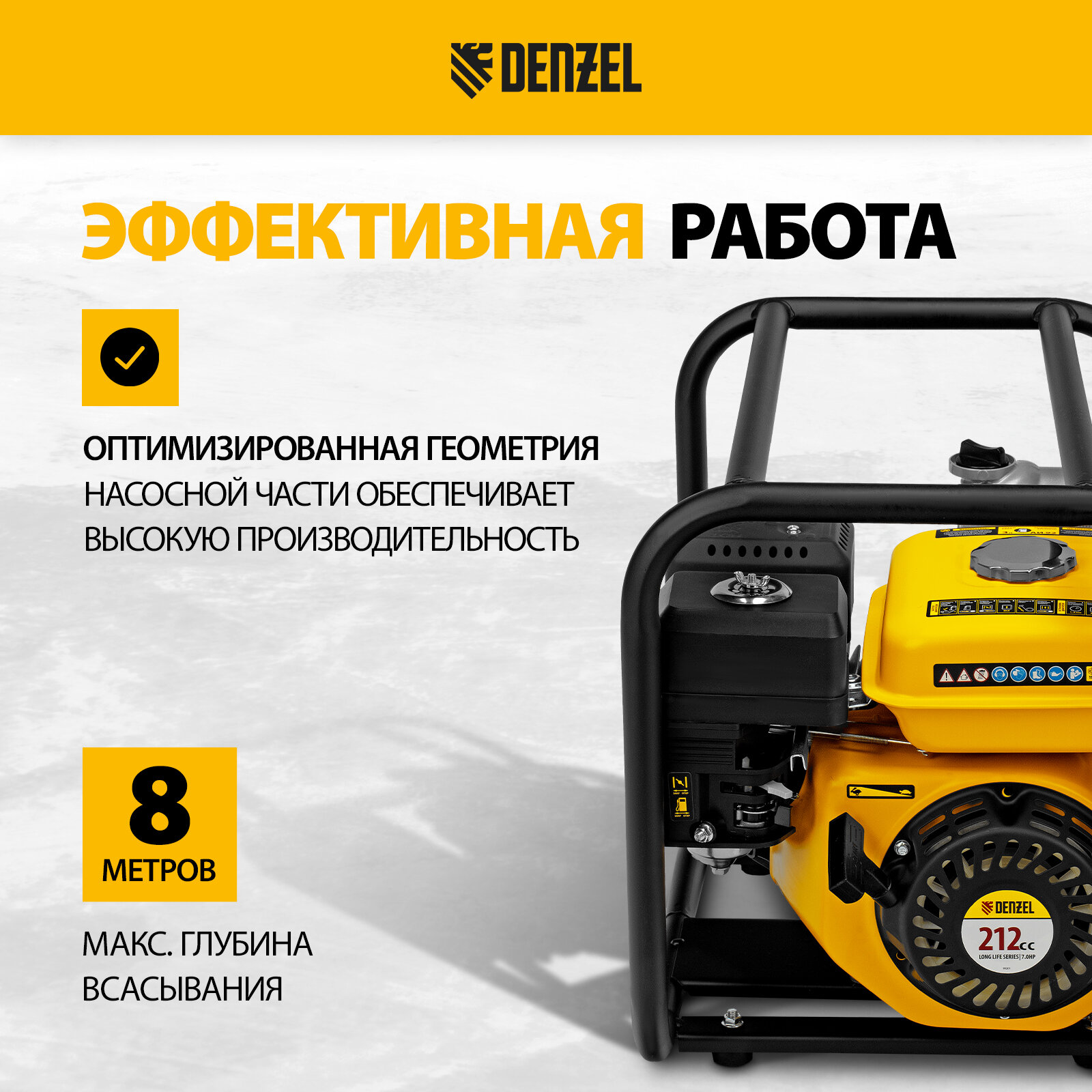 Купить Мотопомпа бензиновая DENZEL PX-50, 7 л.с, 2, 600 л/мин, глубина 8 м, напор 30 м