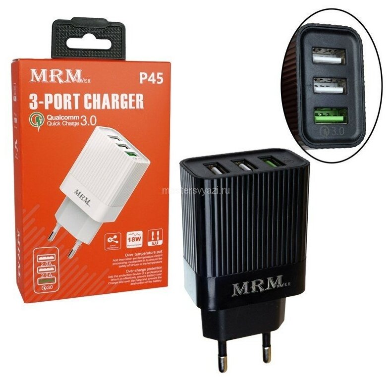 Сетевое зарядное устройство MRM P45 QC3.0 + 2.4A 3USB black интересное: