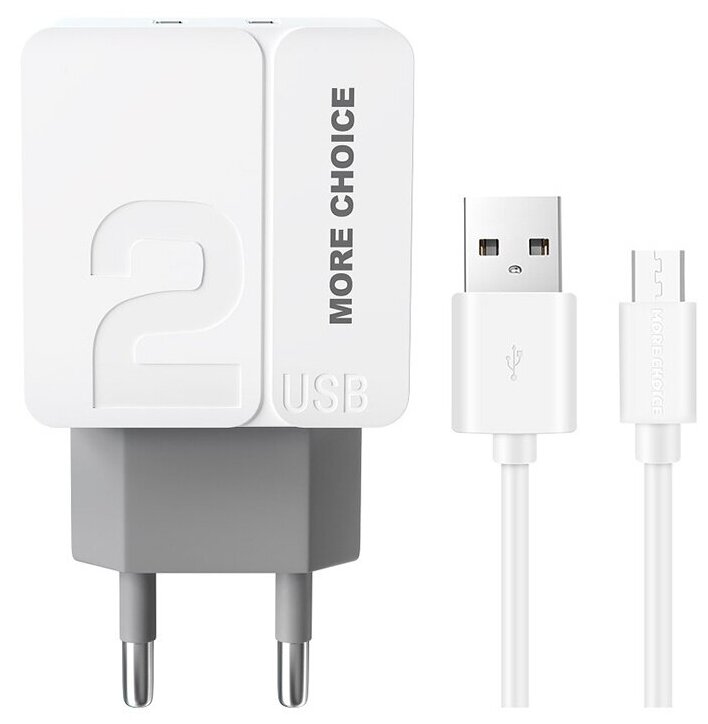 Сетевое зарядное устройство 2USB 2.4A для micro USB More choice NC46m 1м White White