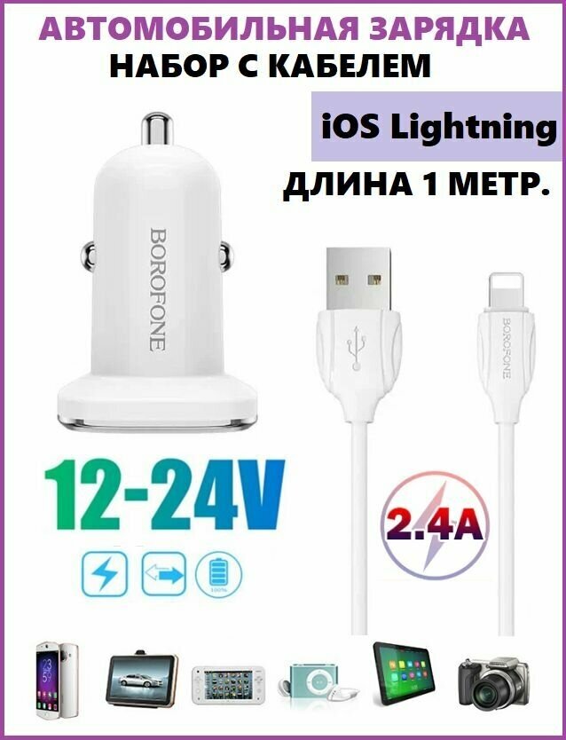Купить Зарядное устройство автомобильное с проводом Lightning 1м. 2xUSB 5V/2.4А
