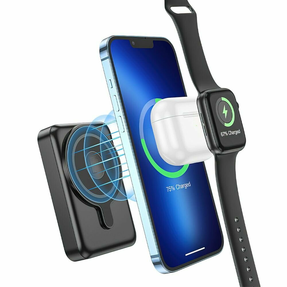 Купить Портативное зарядное устройство Hoco Q11 3in1 Magnetic Phone, iWatch, headset 10000mAh, черное