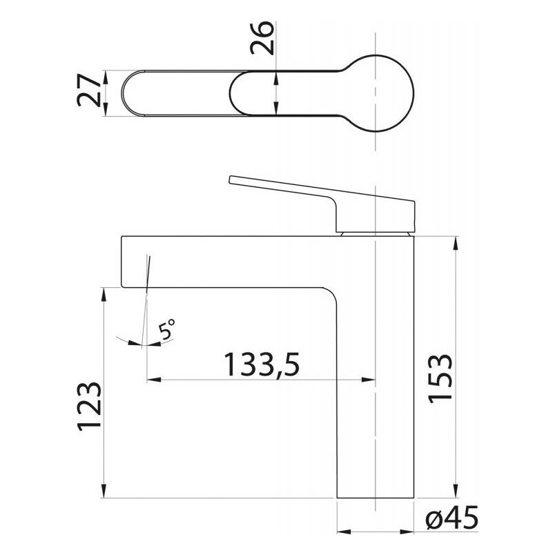 | Длина излива | 133 мм |