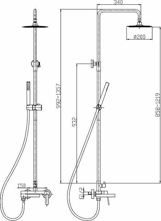| Форма верхнего душа | круглая |