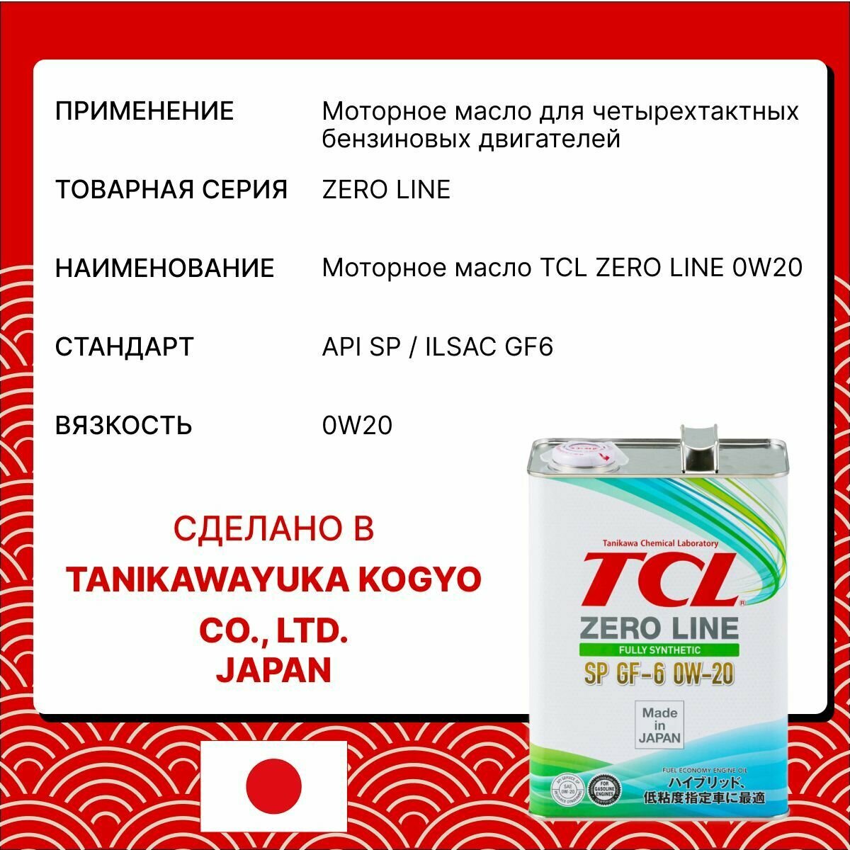 Масло моторное TCL Zero Line Fully Synth, Fuel Economy, SP, GF-6, 0W20, 1л TCL Z0010020SP | цена за 1 шт