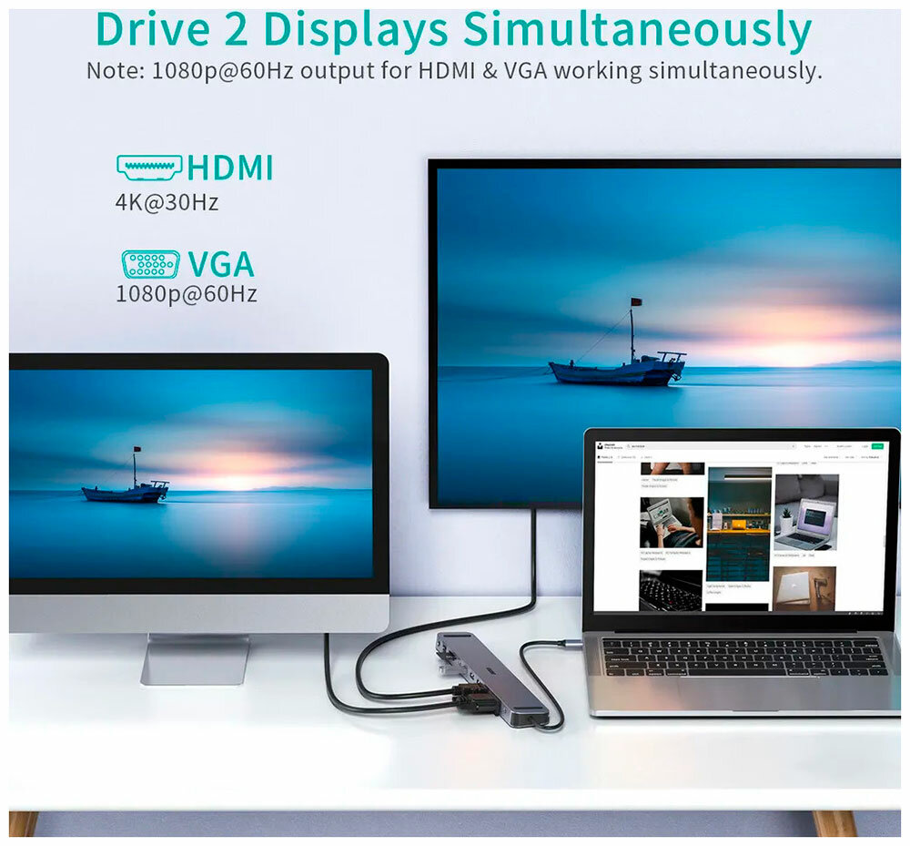 | Дополнительная информация | 4 x USB 3.0, 1 x USB-C PD ,1 x 4K HDMI, 1 x VGA, 1 x RJ45, 1 x jack 3.5 mm, 2 x SD/Micro SD |