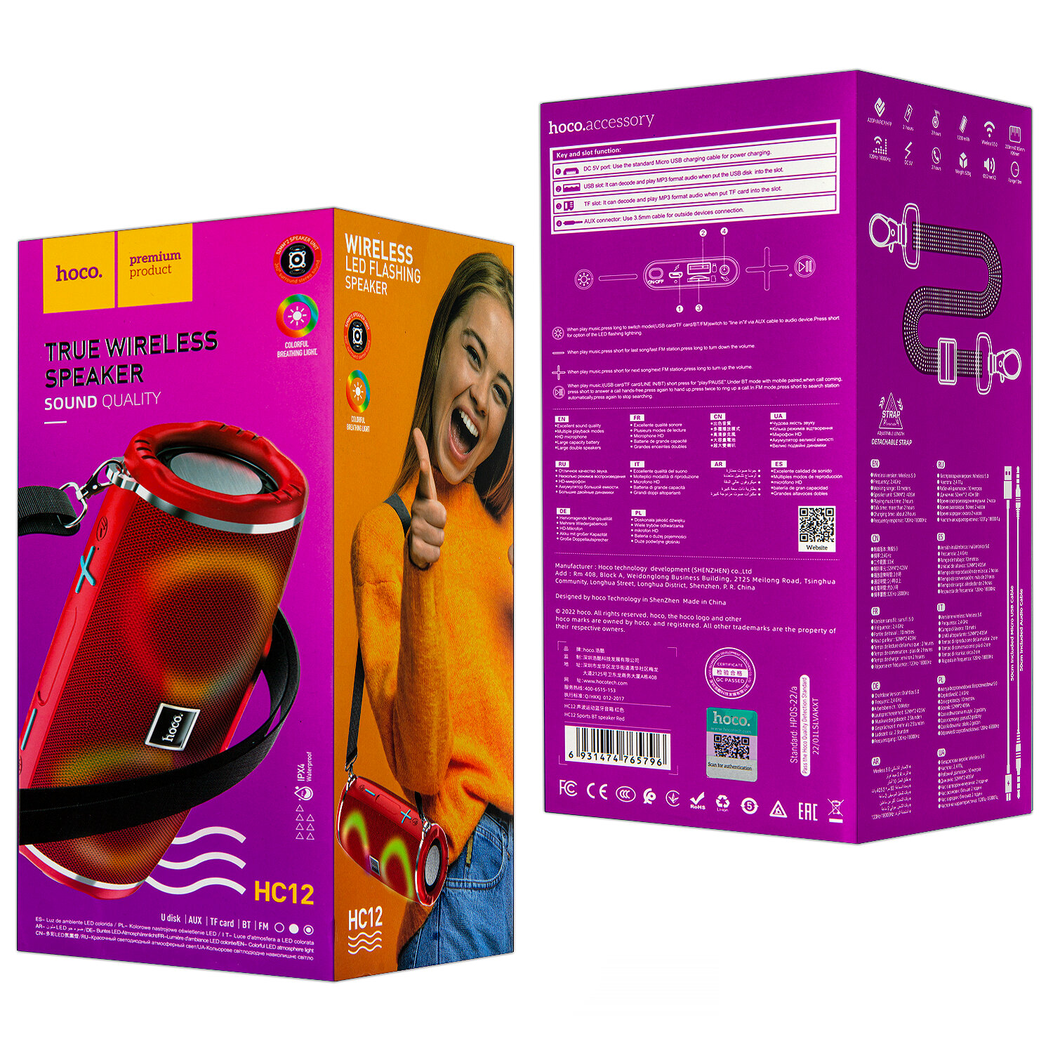Портативная колонка Hoco HC12, 10 Вт, ВТ 5.0, FM, AUX, 1200 мАч, красная