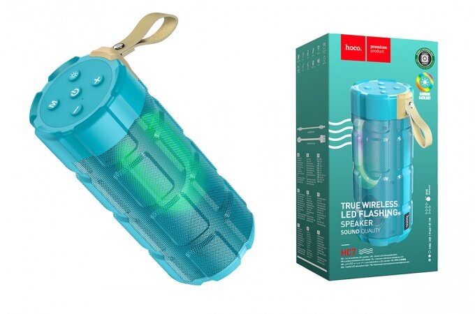 Купить Беспроводная колонка HOCO HC7 Pleasant sports, Bluetooth, 2400 мАч, 5Вт*2, синий павлин, FM, TF, AUX, USB