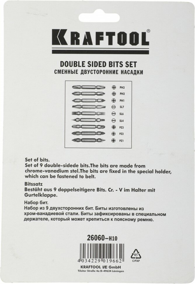 Купить Kraftool Набор бит двухсторонних 9 предметов KRAFTOOL 26060-H10