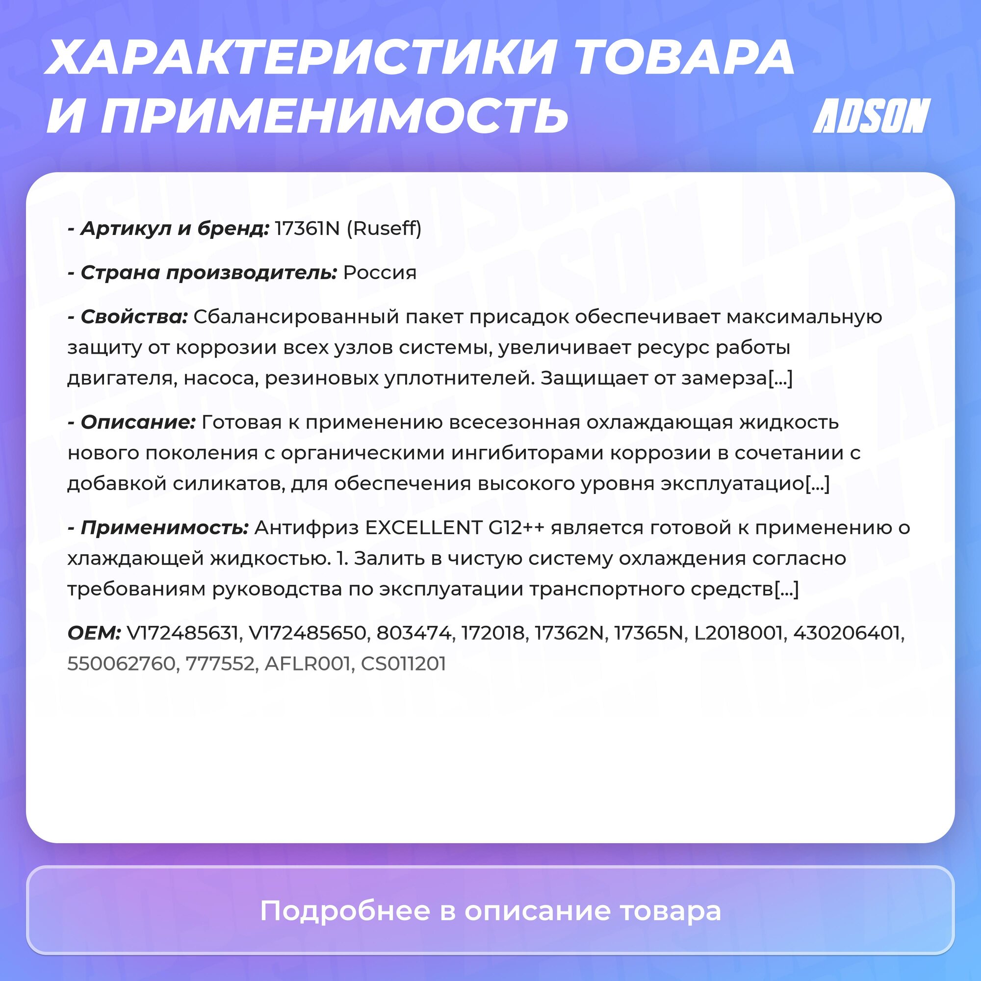 17361N RUSEFF Антифриз ANTIFREEZE EXCELLENT G12++ (1 кг) интересное: