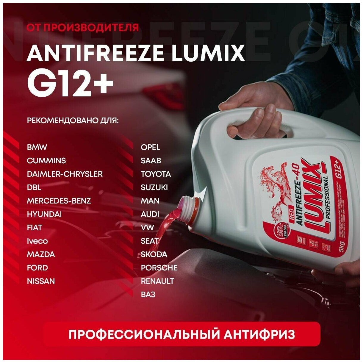 Антифриз для двигателя автомобиля LUMIX ANTIFREEZE RED G12+ (-40) красный 5 кг, охлаждающая жидкость Люмикс в авто, до -40С, карбоксилатный Г12+, готовый к применению