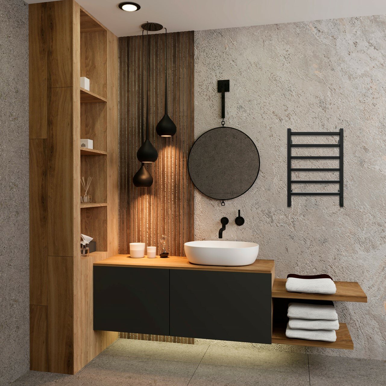 Полотенцесушитель электрический Grois Alex GR-101 500мм 600мм П6 черный матовый подключение универсальное форма Лесенка
