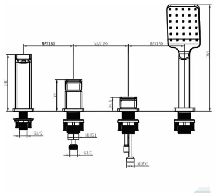 Смеситель на борт ванны 4 отверстия KERN 5555 хром интересное: