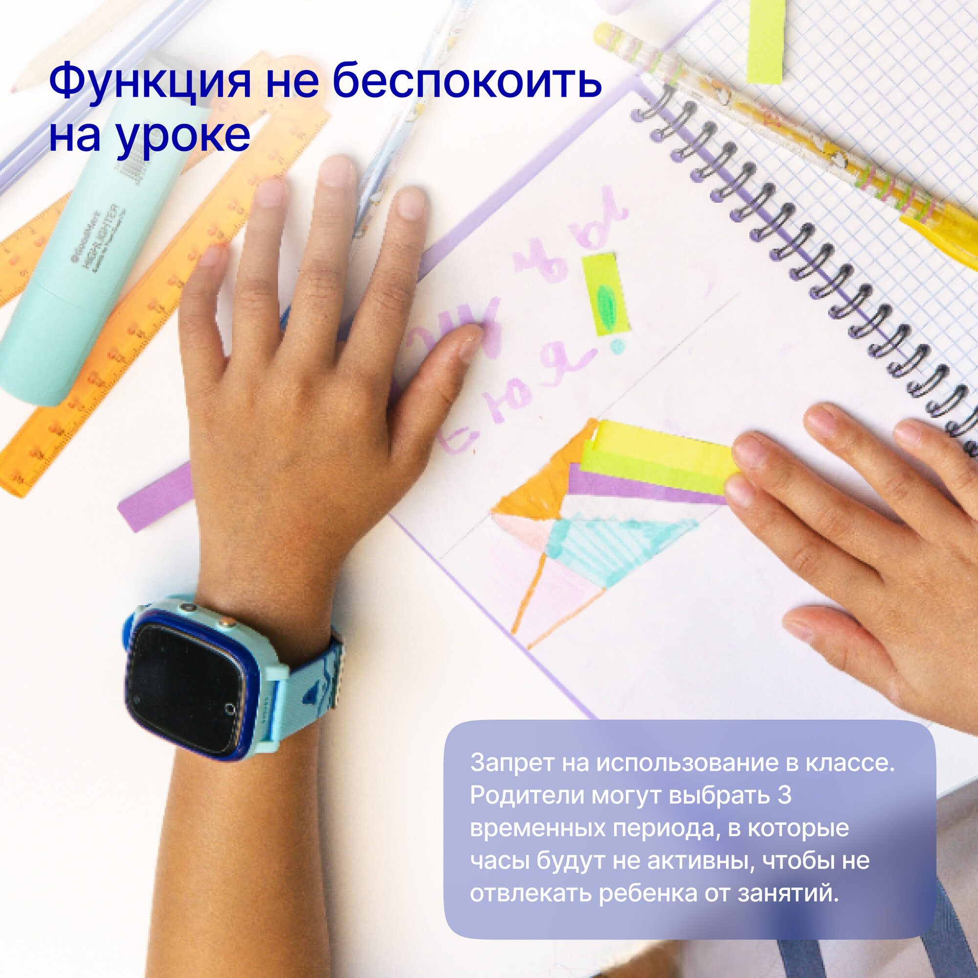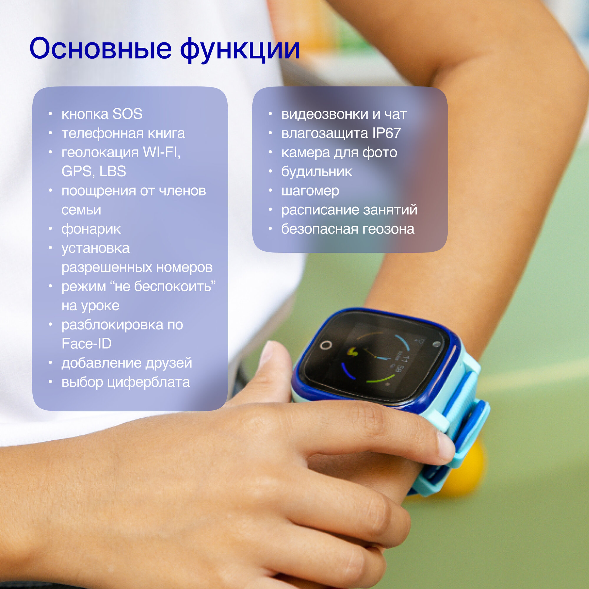 | Особенности | шагомер; поощрение ребенка; расписание уроков; будильник |