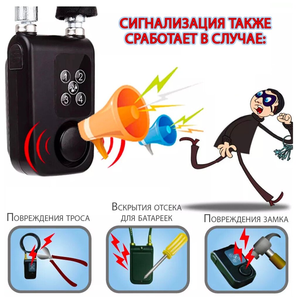 Замок на велосипед тросовый с цифровым кодом и сигнализацией интересное:
