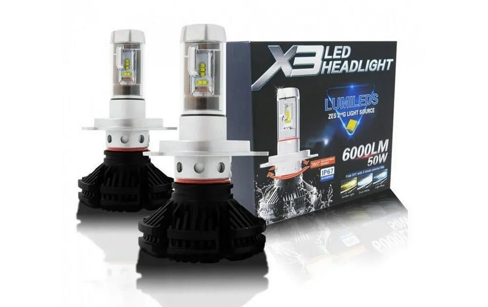 Светодиодные автомобильные лампы LED X3 цоколь H4 50w пара