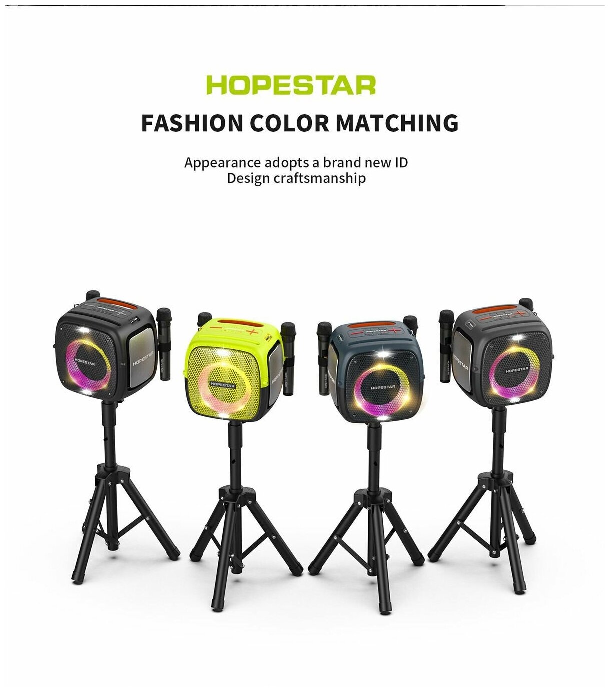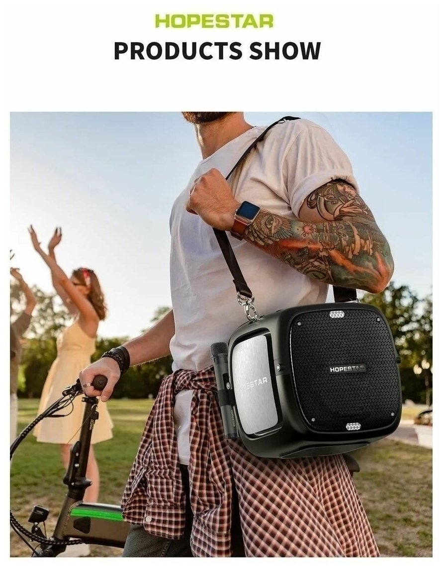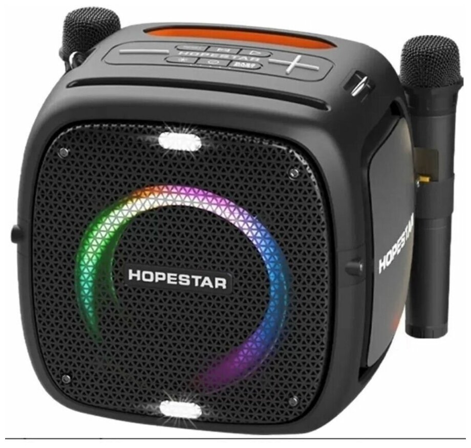 Портативная Bluetooth Колонка Hopestar Party One 80 Вт, с двумя беспроводными микрофонами/портативная акустика /блютуз колонка (серый) интересное: