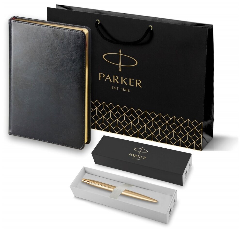 Купить Подарочный набор Parker: Ежедневник черного цвета с золотистым срезом и шариковая ручка Parker Jotter XL YellowGold