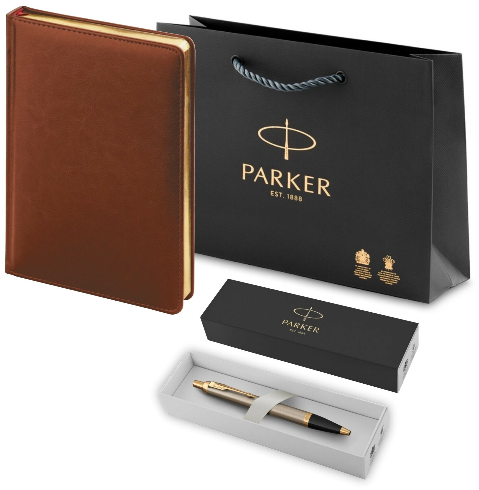 Купить Подарочный набор: Шариковая ручка Parker IM Metal Core Brushed Metal GT и Ежедневник недатированный А5 коричневый