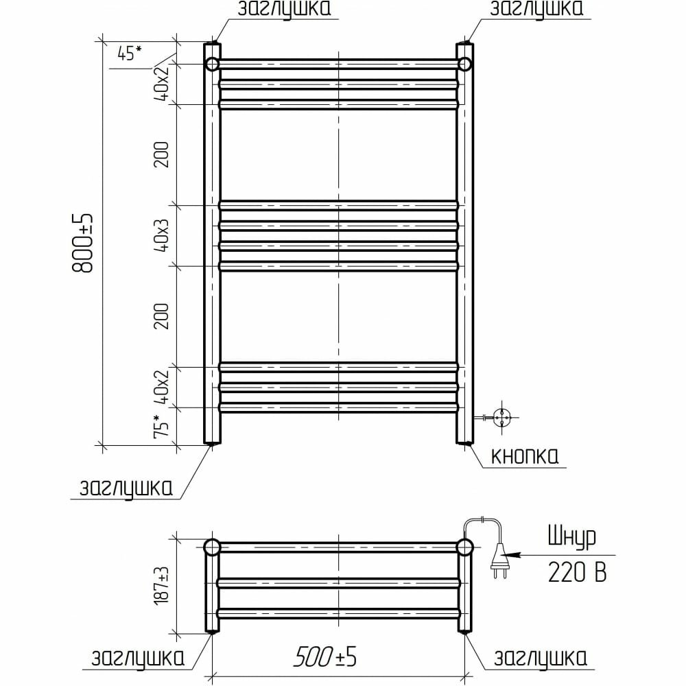 Полотенцесушитель Электрический Тругор Пэк сп 5 П 60х50 черный ВГП
