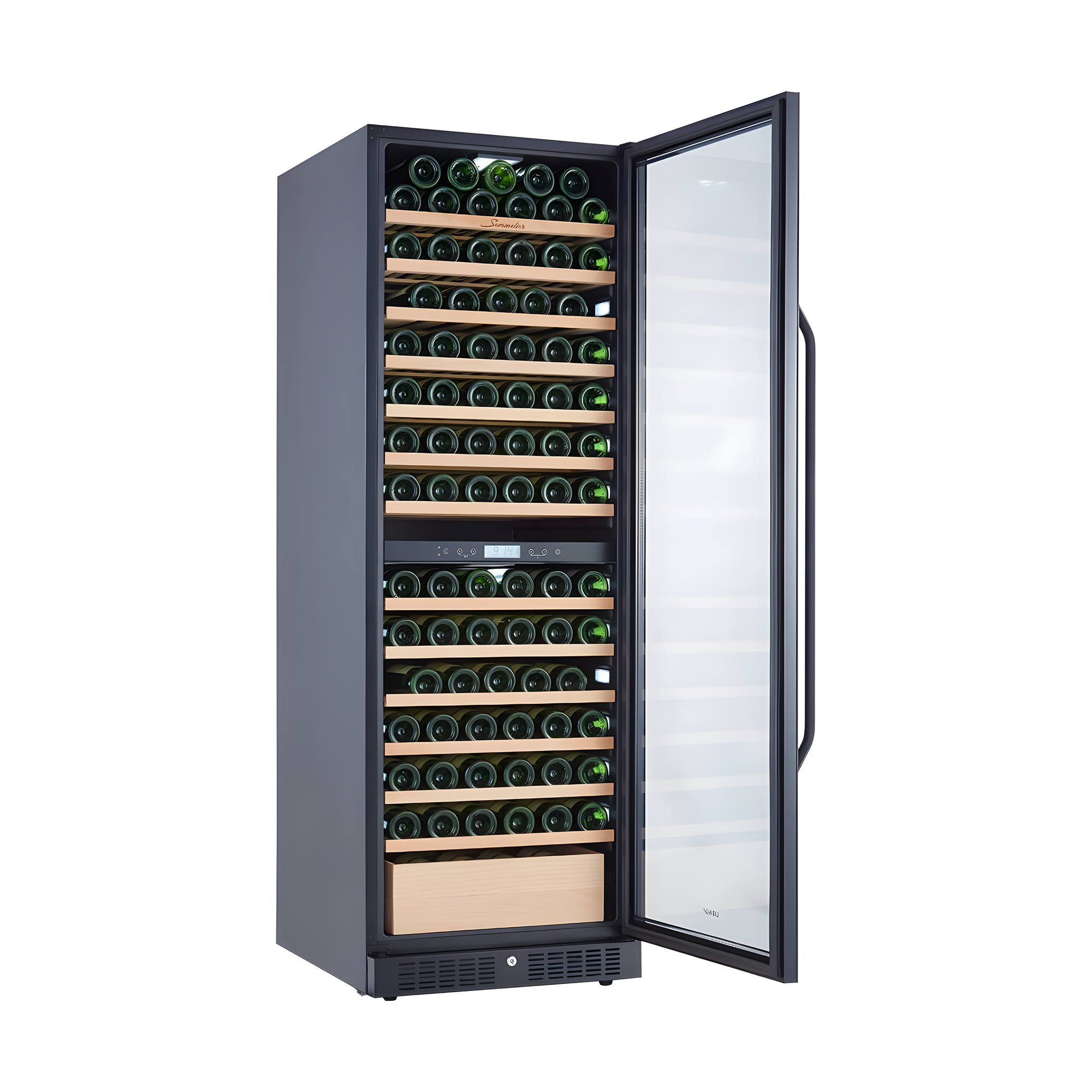 | Отзыв: | В данный момент у меня 2 таких винных шкафа стоят в заведении, один в погребе для особой коллекции, другой под рукой. Нравится понятное управление и гибкая настройка температуры от +5 до +20С. Качество сборки хорошее, панель управление в средней части, дверца прилегает плотно. Воздух фильтруется сменным фильтром из активированного угля. Всего полок 11, все из дерева, что снижают вибрацию во время работы шкафа основательно. Работает кстати тихо, практически бесшумно 40 дБ. Есть защита от детей. |