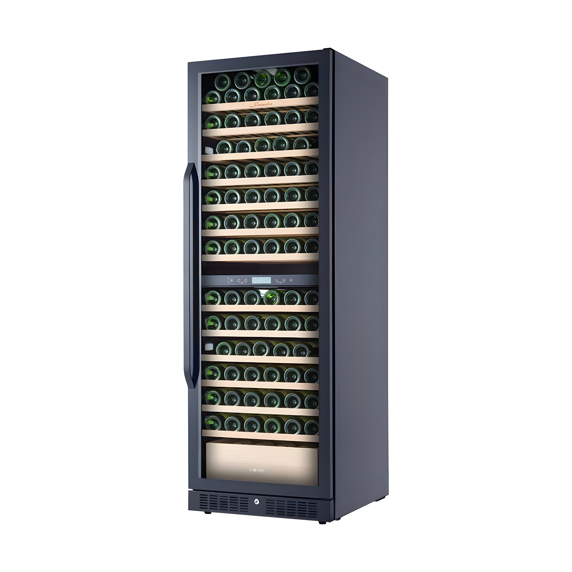 Во-первых, этот винный шкаф обладает стильным дизайном и черным цветом, который прекрасно впишется в любой интерьер. Во-вторых, он имеет вместительность на 161 бутылку, что позволяет сохранять большое количество различных сортов вина. Температура регулируется от +5 до +20 °C. |
