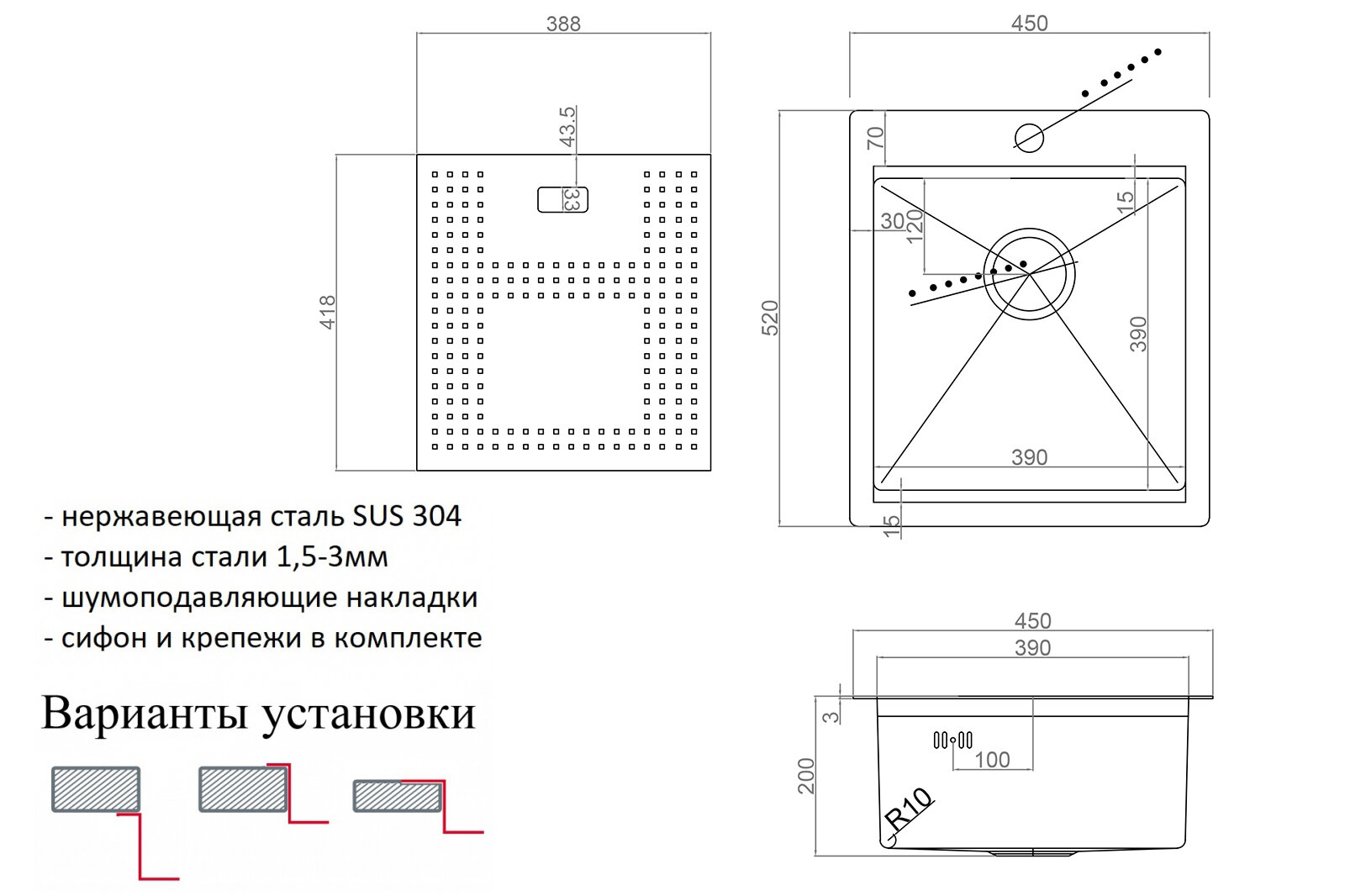 Мойка для кухни нержавеющая Zorg 450х520 мм ZM N-4552 с накладкой интересное: