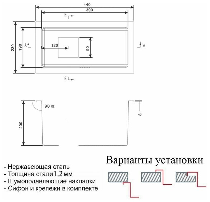 | Форма мойки | прямоугольная |