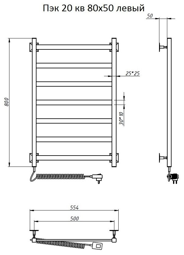 Полотенцесушитель тругор электрический ПЭК 20 кв 80х50 7 перекл квадр проф унив подкл (477 Вт)