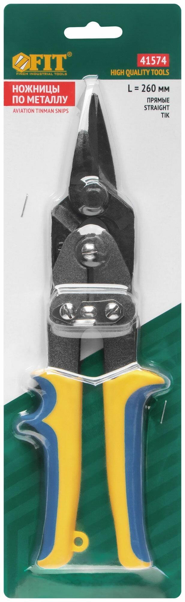 FIT Ножницы по металлу 250 мм правые усиленные CrV для стали до 1,2 мм и нержавеющей стали до 0,8 мм, прорезиненные ручки